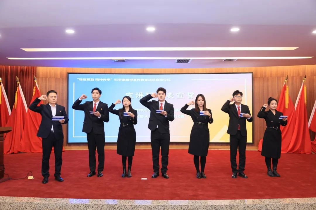 為大力弘揚科學家精神,彰顯集團科技創新國家隊使命擔當,會議啟動“增信賦能 精神傳承”科學家精神宣傳教育活動,李玉鑫為“尚學揚志 焊衛匠心”宣講團成員頒發聘書,宣講團團長雷振帶領哈焊所青年代表進行宣誓。