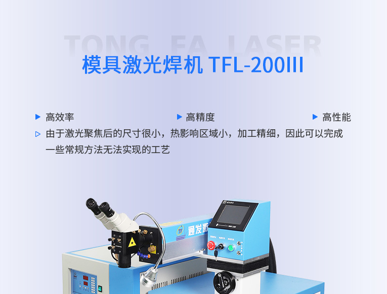 通發(fā)激光國內(nèi)率先推廣國產(chǎn)模具激光焊機(jī),TFL-200Ⅲ升級型世界500強(qiáng)選用,針對精密塑膠模具激光焊、鏡面塑膠模具激光燒焊、精密壓鑄模具激光焊補(bǔ).為國內(nèi)模具修復(fù)行業(yè)做出巨大貢獻(xiàn)。