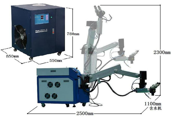 環境濕度:不高于80% 。因為焊機電源打開后,激光晶體就會持續的被冷卻系統冷卻,因為冷卻水一般會低于室溫,當環境濕度過大的時候,而激光晶體的溫度又低于室溫,這時激光晶體的兩個端面上會凝結水霧,當激光輸出的時候,這些水霧會大大降低激光輸出能量,而且這些附著在激光晶體端面上的水,干了以后,會在激光晶體的膜面上留下痕跡,這將會大大加快激光晶體膜面的老化。所以,為了防止這種情況的發生,冷水機的水溫設定,夏天不可以低于室溫3度,冬天不可以低于5度。
