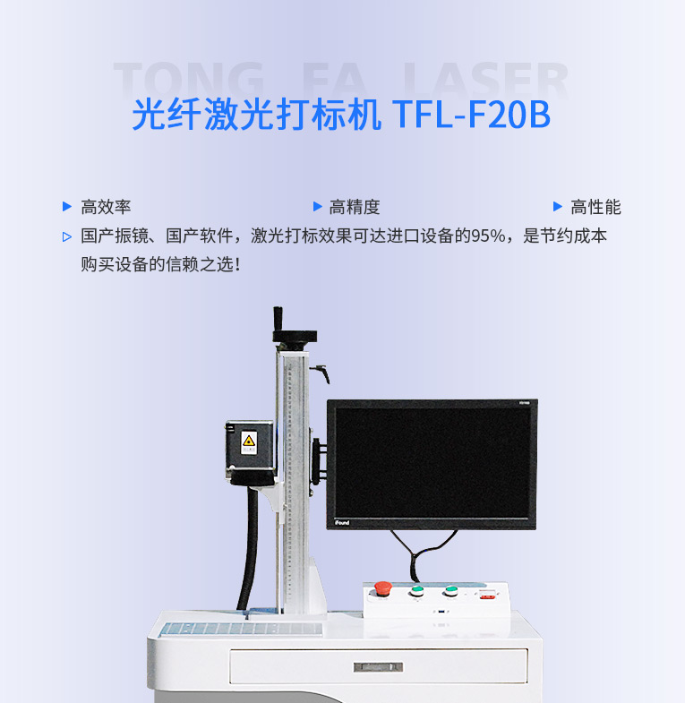通發(fā)激光研發(fā)的TFL-F20B激光打標機,金屬材質和塑膠材質均可進行打標加工。本激光鐳雕機光纖激光器、振鏡、軟件、聚焦鏡等核心配件采用原裝進口,性能穩(wěn)定,壽命是國產器件的1.5倍,是高端客戶的優(yōu)選。