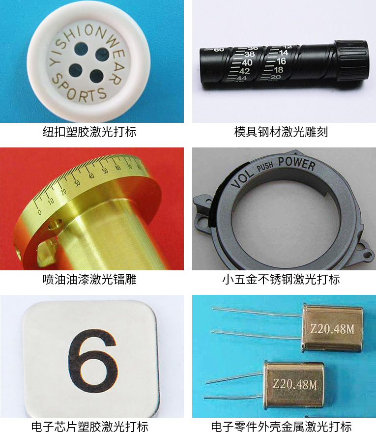 電子通訊行業(yè):鍵盤塑膠激光打標、電子元器件外殼激光打標、家電面板激光打標等;