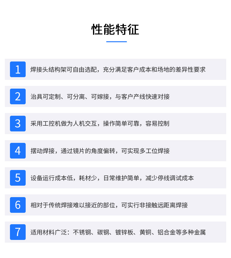 2、強大的PC控制,易于編程、調(diào)試和維護。可完成自動或半自動的點焊、對接焊、疊焊、密封焊,針對復(fù)雜的平面直線、圓弧及任意軌跡的焊接。