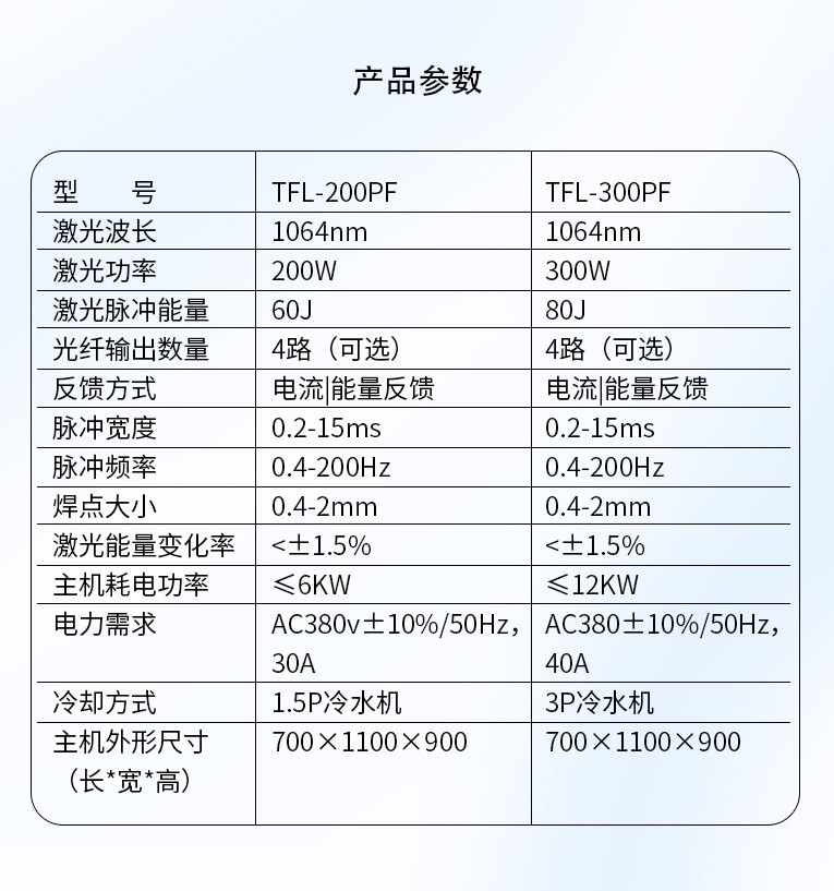 通發(fā)激光TFL-300PF光纖激光焊接機(jī),精密能量反饋控制模式,穩(wěn)定性<3%,經(jīng)過(guò)光纖優(yōu)化獲得卓越的光束質(zhì)量,適合1mm以下精密手機(jī)五金激光焊接、廚衛(wèi)家電五金不銹鋼精密激光焊接加工。